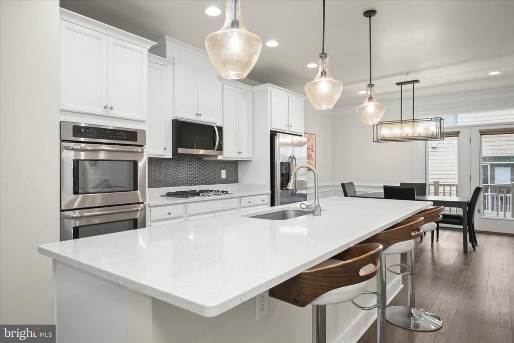 Beautiful end-of-row, four-level townhome in a sought-after Riverdale community. The bright and airy main level features an open-concept design with seamless wide-plank flooring, recessed lighting, and a soothing neutral color palette. The inviting living room is anchored by a cozy gas fireplace flanked by modern floating shelves, while the gourmet kitchen is a chef’s dream, highlighted by an oversized island breakfast bar with pendant lighting, quartz countertops, a herringbone tile backsplash, and stainless steel appliances. The kitchen opens to the dining room, accented with elegant molding and offering walkout access to the balcony. Upstairs, the primary bedroom suite includes a spacious walk-in closet and a luxurious bathroom with a dual vanity and large glass-enclosed shower. Two additional bedrooms, a stylish hall bathroom, and a convenient laundry room complete this level. The top floor features a generous loft space with a large private terrace showcasing new tile flooring and expansive views, perfect for relaxing or entertaining. This home provides a 2 car garage for added convenience. Riverdale Park’s vibrant town center is just moments away, offering neighborhood favorites like the weekly farmers market, Riversdale House Museum, and a growing collection of restaurants and cafes. Enjoy nearby Trolley Trail or the Anacostia Riverwalk Trail, or spend the day at one of the nearby playgrounds or dog parks. For daily essentials, Whole Foods, Thursday's farmer's market and Trader Joe’s are all nearby. Enjoy Rivieras Tapas, nationally recognized 2Fifty Texas BBQ, and Town Center Market just a couple of blocks away. Commuters will appreciate access to the Riverdale MARC Station, the Green Line Metro, the upcoming Purple Line, and nearby highways including US 1, E-W Highway, and the BW Parkway. A perfect blend of charm, space, and unbeatable location, this Riverdale Park Station gem is ready to welcome you home